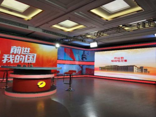 黨的十九大江西衛(wèi)視演播室(圖中led顯示屏由洲明科技提供)