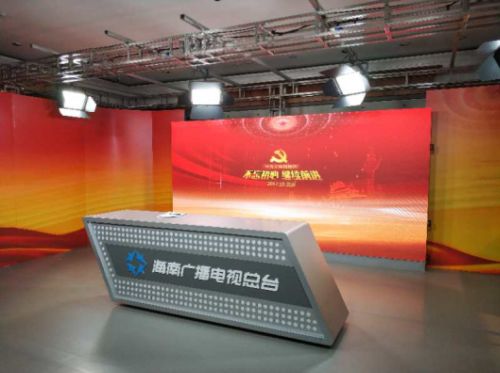 黨的十九大海南電視臺(tái)演播室(圖中led顯示屏由洲明科技提供)