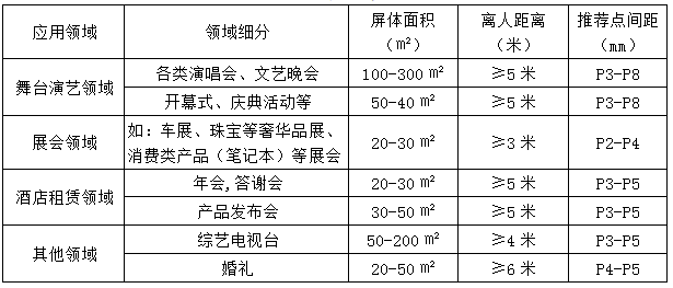 表1 舞臺(tái)租賃領(lǐng)域點(diǎn)間距需求