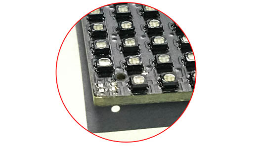 C系列的PCB設(shè)計(jì)也采用德彩光電獨(dú)創(chuàng)的防撞焊盤設(shè)計(jì)。市面上一般的led顯示屏LED燈被撞掉后如果焊盤也被撞掉,則只能通過(guò)飛線或者LED將無(wú)法再維修。經(jīng)測(cè)試,目前市面上常規(guī)的LED與焊盤的拉力測(cè)試為30-40N,我們的C系列達(dá)到了70-80N。所以,采用德彩光電C系列的防撞焊盤的設(shè)計(jì)即使LED燈被撞掉,焊盤不易損壞,極大地提高了LED燈的可維護(hù)性。