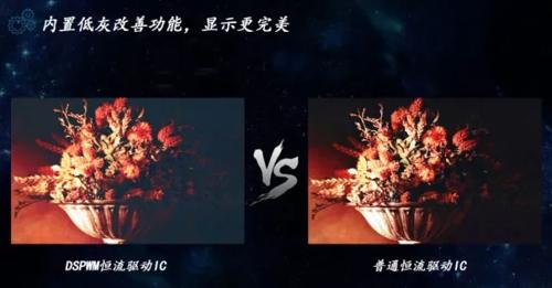 DSPWM恒流驅(qū)動(dòng)IC支持3.3-5V的工作電壓,內(nèi)置低灰改善和電流精度改善功能,解決:模組全白兩邊偏紅、低灰顯示色塊、模組級(jí)聯(lián)后花屏等諸多問(wèn)題,畫(huà)面顯示更完美。