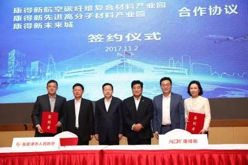 11月2日,康得新與張家港市政府在張家港隆重舉行《“兩園一城”戰(zhàn)略合作框架協(xié)議》簽約儀式,雙方將共同打造“先進(jìn)高分子材料產(chǎn)業(yè)園”、“航空復(fù)合材料產(chǎn)業(yè)園”和“康得新未來城”的“兩園一城”項(xiàng)目,標(biāo)志著共屬于康得新、張家港、江蘇省的偉大征程,正式隆重開啟。江蘇省委常委、蘇州市委書記周乃翔,蘇州市委副書記、代市長李亞平,市委常委、秘書長黃愛軍,張家港市委書記朱立凡,市長黃戟,康得新集團(tuán)董事長鐘玉、CEO徐曙,萬科集團(tuán)高級副總裁張海出席簽約儀式。