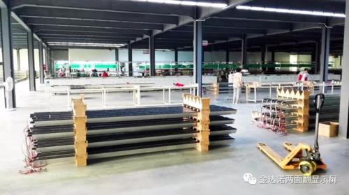 近期金達(dá)諾兩面翻顯示屏訂單不斷,寧夏銀川220平方米、廣西北海95平方米、廣西北海230平方米、安徽界首185平方米、四川綿陽(yáng)110平方米、江西宜春220平方米、浙江溫州450平方米。6地7屏共計(jì)1510平方米訂單井然有序地投產(chǎn)下線,目前生產(chǎn)二線工人已全部到崗,兩條生產(chǎn)線正開足馬力全速運(yùn)轉(zhuǎn)。為了趕訂單,公司取消周末休息,兩線工人全部加班生產(chǎn)。