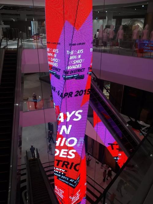 該螺旋立柱創(chuàng)意屏所在地為東南亞最美的商場之一,擁有超高的綠色空間,尤如一個空中花園,商場內(nèi)大牌云集,不僅有本土品牌,還有許多國際大牌也在此落戶。