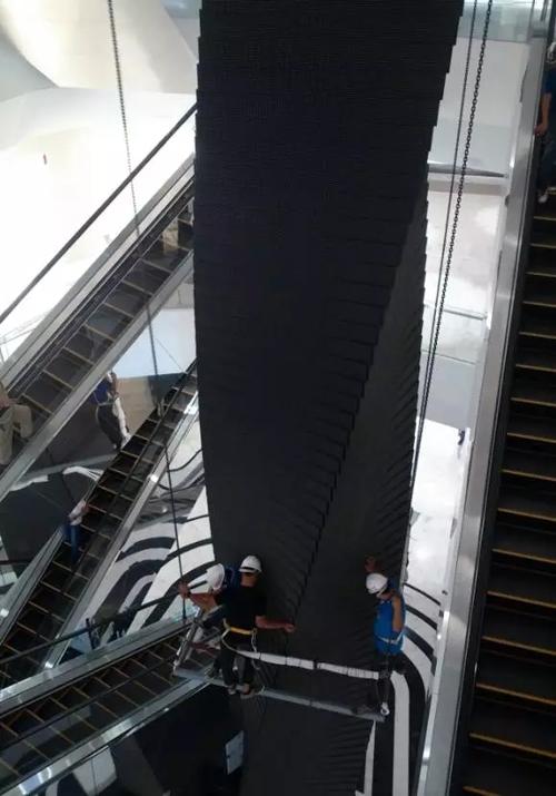 另一方面,貫穿三層高樓立柱巨屏的后期維護是難點中的難點。