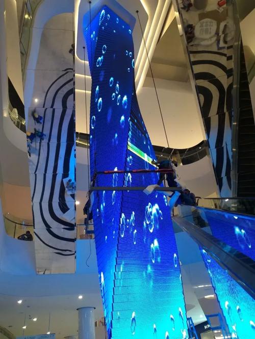 接到這個項目之后,艾比森的團隊對商場展開了實地考察,結(jié)合客戶對美感的極致追求,最終決定制作一個螺旋式上升的創(chuàng)意立柱巨屏。