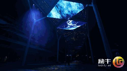 藝術(shù)模式總主題為天幕上的超現(xiàn)實(shí)世界,包含沙畫(huà)、星球工廠、宇航員、大射電信號(hào)波四大主題。旨在結(jié)合透明LED屏的特征,讓用戶通過(guò)天幕這扇窗,眺望“窗外”的超現(xiàn)實(shí)世界。