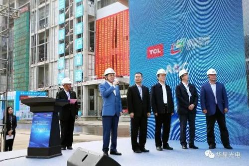 深圳市經(jīng)貿(mào)信息委副主任胡曉清,深圳市發(fā)展改革委副主任徐智東,光明新區(qū)管委會副主任胡汝林,旭硝子株式會社執(zhí)行役員電子公司顯示器事業(yè)本部長鷲之上正剛,TCL集團董事長兼CEO、華星光電董事長李東生,華星光電CEO、華星光電半導(dǎo)體總經(jīng)理金旴植,以及股東方代表,銀團代表,參建單位和旭硝子,華星光電的員工代表共300余人出席封頂儀式。儀式由華星光電副總裁金松主持