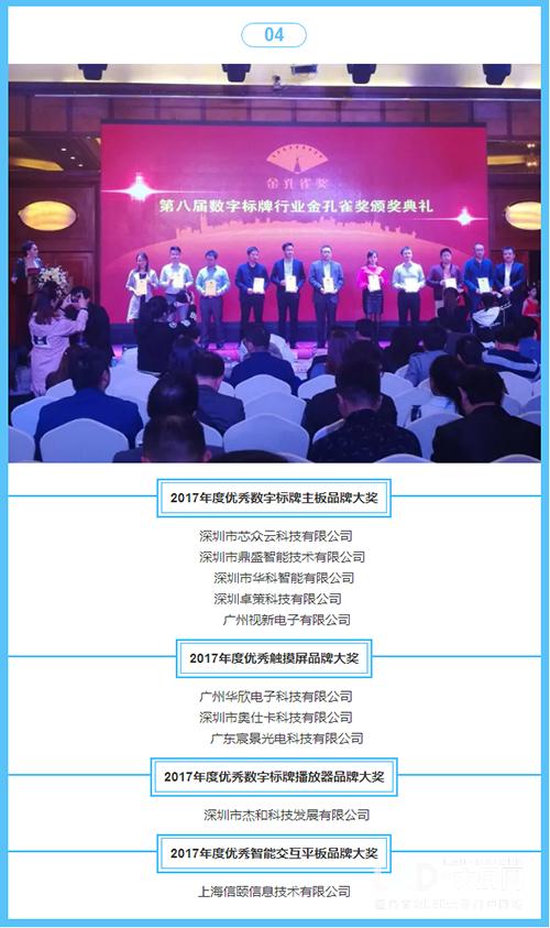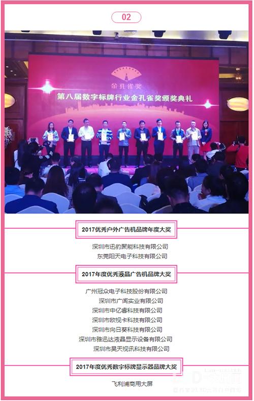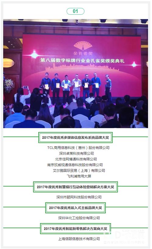 作為數(shù)字標(biāo)牌行業(yè)頗有名氣的盛會(huì),應(yīng)是視聽覺相融合、榮耀加冕的宴會(huì)。而本屆活動(dòng)除了帶來了聽——行業(yè)專家論行業(yè)發(fā)展之道;亦對于行業(yè)優(yōu)秀企業(yè)進(jìn)行評選,精益求精,對優(yōu)秀之中的佼佼者授予金孔雀的最高榮譽(yù);當(dāng)然缺少不了視覺感受,主辦方在活動(dòng)中設(shè)置了展示專區(qū),讓參會(huì)者零距離觀看數(shù)字標(biāo)牌設(shè)備產(chǎn)品的廬山真面目。