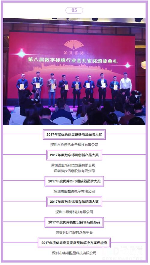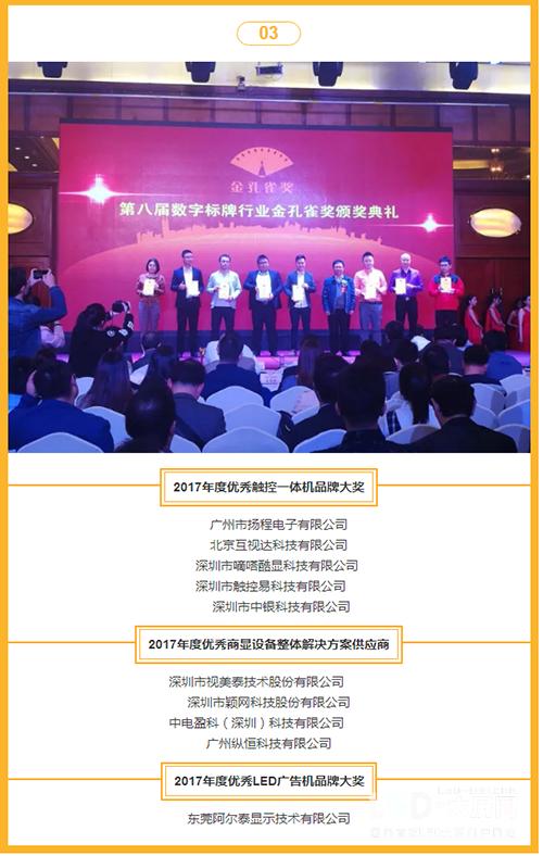 萬眾矚目的行業(yè)殿堂級盛宴——2017視聽行業(yè)高峰論壇暨第八屆數(shù)字標(biāo)牌行業(yè)金孔雀頒獎(jiǎng)典禮今天在深圳圣廷苑酒店隆重舉行。來自全國各地的行業(yè)500位精英翹楚匯聚一堂,共話行業(yè)發(fā)展趨勢,見證企業(yè)加冕行業(yè)金孔雀榮譽(yù)。