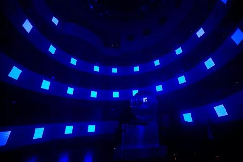 將客人帶入一個(gè)全新的,改造過(guò)的空間中,以照明系統(tǒng)為主的一個(gè)設(shè)計(jì),包含了50個(gè)搖頭光束燈和20平方米的LED屏幕,每個(gè)屏幕分成50cms的小模塊放置在整個(gè)結(jié)構(gòu)表面