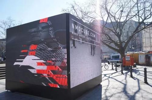 大型交互式LED裝置,放置在歐洲各個(gè)城市,立方體的主要目的是推廣新款鞋子