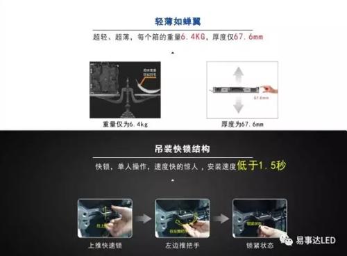 此款產(chǎn)品采用超輕薄設(shè)計,6.4KG重,6.7cm厚,外觀簡約時尚,而內(nèi)在豐富;模組使用無線連接,安全穩(wěn)定;將信號接口外露,減少了轉(zhuǎn)接帶來的不良影響;采用磁吸結(jié)構(gòu),減少拆裝的時間,方便快捷;箱體可異型、錯位拼裝,能實現(xiàn)更多創(chuàng)意造型;快鎖,單人操作,速度快的驚人。