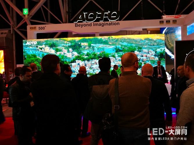 成為全場(chǎng)焦點(diǎn)的奧拓電子500寸8K商顯巨屏