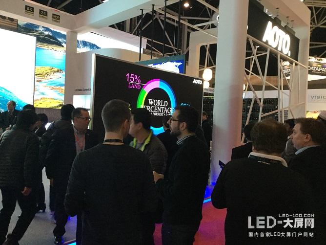 此次奧拓電子展臺(tái)主打的500寸8K LED商顯巨屏,由全新CLD1.5產(chǎn)品拼接而成,做到了真正的無縫拼接,以豐富細(xì)膩的超高清畫面,超高的對(duì)比度,廣闊的色域24Bit處理深度以及完美的可視角度,將全球領(lǐng)先的小間距LED顯示技術(shù)發(fā)揮到極致,成為會(huì)場(chǎng)最閃耀的明星,引領(lǐng)ISE2017 LED視覺體驗(yàn)。