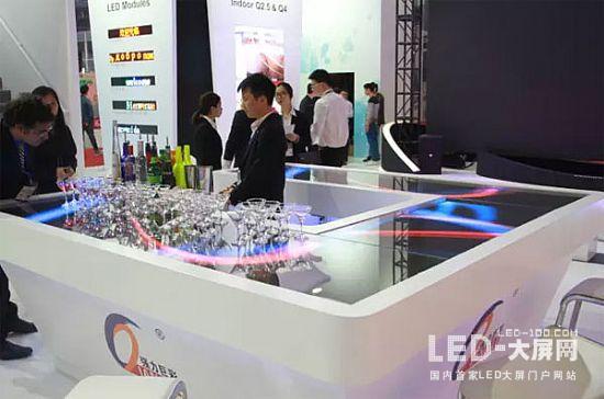讓人眼前一亮的還有強力巨彩的T1.66高密度“吧臺”,這塊顯示效果超高清、畫面逼真,能真正做到低亮高灰、刷新率高達3840Hz以上的T1.66高密度屏被精心鑲嵌在吧臺中,配合著會場的主旋律五彩閃耀,為觀展者營造了一種參加酒會的即視感,時尚又很有國際范兒。