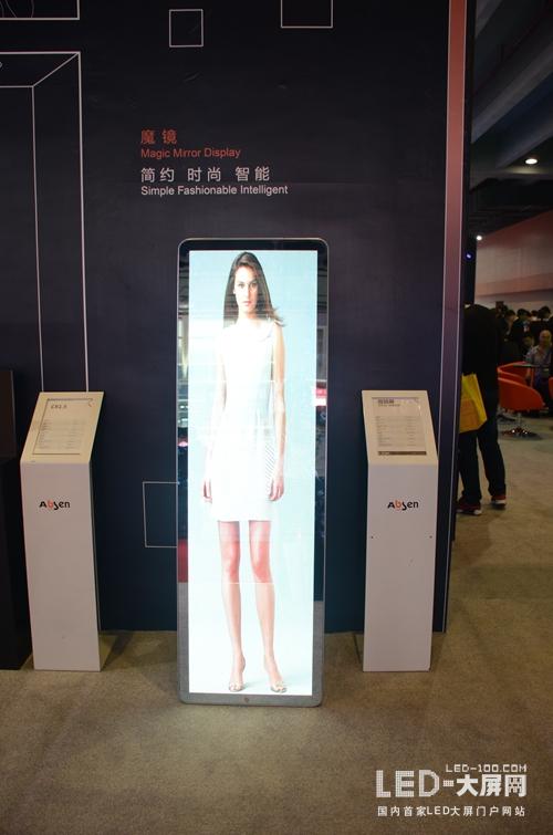 此次,艾比森還展示了公司研發(fā)的LED魔鏡顯示屏,據了解,魔鏡顯示屏具有簡約、時尚、智能的特點,產品的點間距在1.9mm以下,使用高科技鍍膜材料,視頻廣告和傳統(tǒng)虛擬成像通過紅外感應功能實現轉換,具有互動體驗、海量的商品圖片存儲功能,提供給管理人員更簡便的管理服務,實現多機聯(lián)網管理等功能。