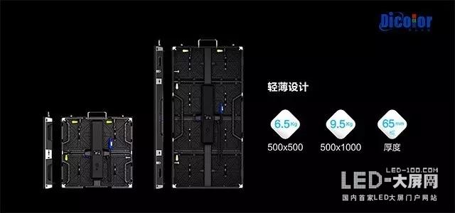 輕薄:D系列采用的是壓鑄鋁材質(zhì),箱體尺寸分為500*1000mm與500*500mm,厚度不足65mm,500尺寸的箱體重量僅為5.9千克,1000尺寸的箱體重量也僅為9千克。輕薄的箱體能有效降低客戶的運輸和安裝成本,節(jié)省租賃活動現(xiàn)場搭建時間,節(jié)省大量的人力和物力,為客戶創(chuàng)造更大的價值。