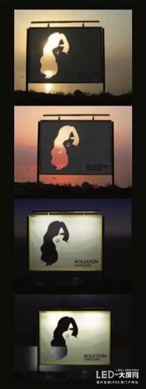 如德國的化妝品牌Koleston的戶外廣告設(shè)計(jì)(圖8),Koleston是以天然染色顏色為推廣定位的染發(fā)劑產(chǎn)品,目標(biāo)市場是25至40歲、喜歡戶外運(yùn)動(dòng)的女性,在其一款戶外廣告設(shè)計(jì)中,執(zhí)行者將4m×3m的標(biāo)版中女性的長發(fā)和五官鏤空,通過標(biāo)版的鏤空可以看到海邊和天際線,藝術(shù)化的將戶外廣告處理成一幅攝影作品;而且隨著日出日落,路過的行人可以看到這幅極富“藝術(shù)化”的攝影中的女性的長發(fā)顏色隨自然而變,巧妙的將產(chǎn)品的“天然染色顏色”訴求和大自然結(jié)合,在做足了“視覺欣賞”、“藝術(shù)感受”的渲染之后,最終讓路過的行人抓住產(chǎn)品的訴求點(diǎn),促成商品的銷售,這樣帶有藝術(shù)構(gòu)思的產(chǎn)品宣傳廣告怎能不讓消費(fèi)者動(dòng)心。