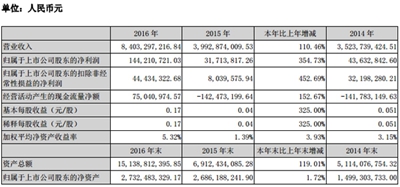 2017年4月24日,蘇州東山精密制造股份有限公司(證券代碼:002384,以下簡(jiǎn)稱“東山精密”或“公司”)發(fā)布2016年年度報(bào)告摘要,顯示,2016年,公司實(shí)現(xiàn)營(yíng)業(yè)收入8,403,297,216.84元,較上年同期增長(zhǎng)110.46%;歸屬于上市公司股東的凈利潤(rùn)為144,210,721.03元,同比增長(zhǎng)354.73%。