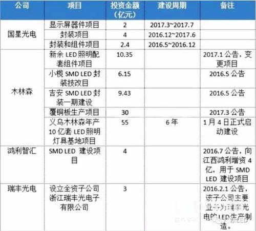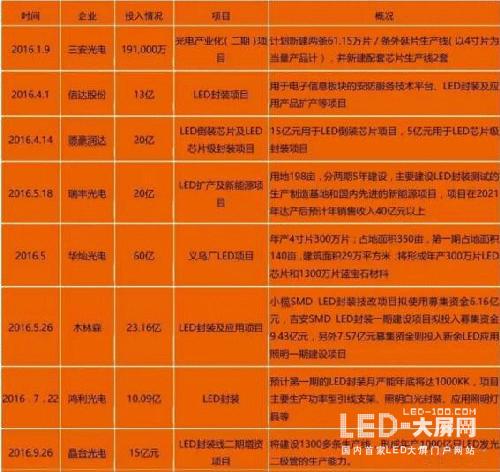 近兩年中國LED企業(yè)擴(kuò)產(chǎn)項(xiàng)目不完整名單