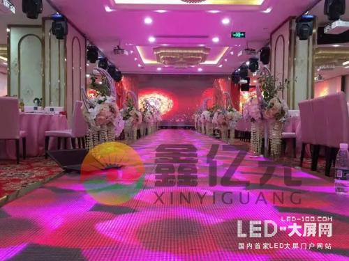 這是一塊由深圳鑫億光科技有限公司承制的智能感應(yīng)租賃LED地磚屏,背景屏采用3.91LED租賃屏在整個(gè)宴會(huì)廳形成360°包圍,中間T秀采用智能感應(yīng)LED地磚屏為主,特定視頻播放為婚禮現(xiàn)場(chǎng)增添了許多創(chuàng)意和新穎的顯示效果。此LED地磚屏最大的效果是當(dāng)主角慢慢向主席臺(tái)走過去的時(shí)候,原本是一朵朵含苞待放的玫瑰花跟著主角的腳步一朵朵盛開,潔白的婚紗配上鮮紅的玫瑰花瓣創(chuàng)造出更加美倫美奐的效果,給您的婚禮留下難忘的一刻。