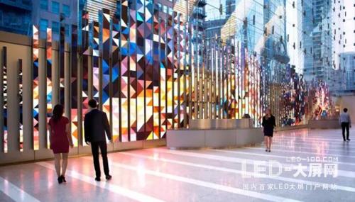 在位于芝加哥的150North Riverside大廳,一個(gè)超過3000平方英尺的Media Stream“活雕塑”,由89個(gè)獨(dú)立的垂直懸掛led顯示屏組成,為在附近上班的人們以及游客帶來 令人驚艷的動(dòng)感數(shù)字視覺體驗(yàn),隨著裝置內(nèi)容的不停改變,每一天的每一刻這件“活雕塑”都會(huì)看起來意義非凡。