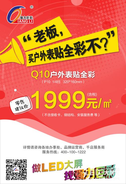今日頭條,強(qiáng)力巨彩Q10(P10 4掃 320*160mm)戶外表貼全彩只需1999元/㎡?你沒看錯(cuò),就是這個(gè)價(jià),比部分戶外直插全彩還要便宜,戶外表貼全彩全民共享時(shí)代已經(jīng)到來。