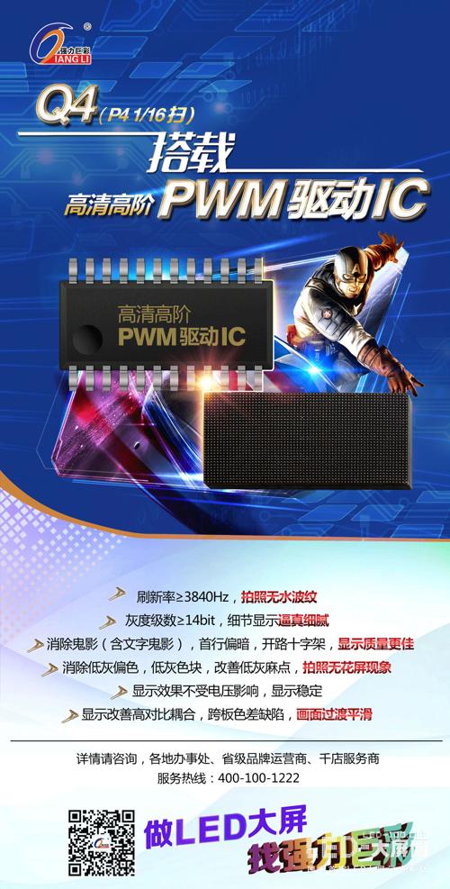 繼P3及以下產(chǎn)品、高密度T系列、標(biāo)準(zhǔn)系列(租賃)、室內(nèi)S系列、A系列配備高清高階PWM驅(qū)動(dòng)IC之后,作為致力于給客戶提供極致LED顯示體驗(yàn)的先行者,強(qiáng)力巨彩這回又給我們帶來(lái)重磅驚喜——Q4(P4 1/16掃)全面升級(jí),搭載高清高階PWM驅(qū)動(dòng)IC。