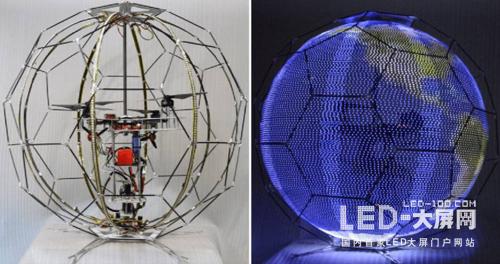 該無(wú)人機(jī)的內(nèi)部是一個(gè)球形的框架,外部則被8個(gè)可折彎的LED條帶從上到下的覆蓋,里面是一個(gè)從底部突出的雙臂無(wú)人機(jī)。在飛行過(guò)程中,LED框架以其快速的水平運(yùn)動(dòng)在其軸上旋轉(zhuǎn),形成余像效應(yīng),以產(chǎn)生靜止的LED的固體球的錯(cuò)覺(jué)。