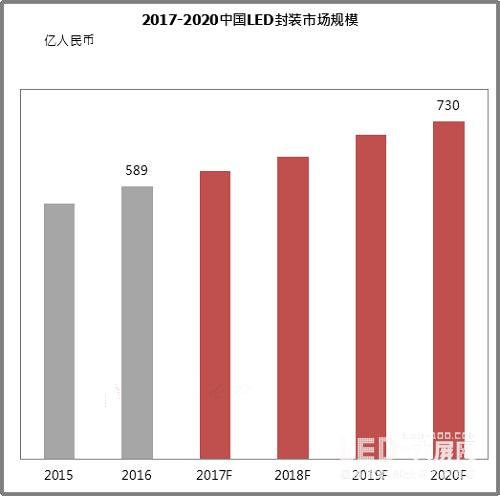 集邦咨詢LED研究中心最新《2017中國LED芯片與封裝產業(yè)市場報告》顯示,2016年中國LED封裝市場規(guī)模為589億人民幣,同比成長6%,比預期稍高。2016年LED價格維持穩(wěn)定,部分產品價格甚至有所上升,在小間距、車用及照明市場的推動下,行業(yè)依然保持增長態(tài)勢。展望2020年,中國LED封裝市場規(guī)模為730億人民幣。