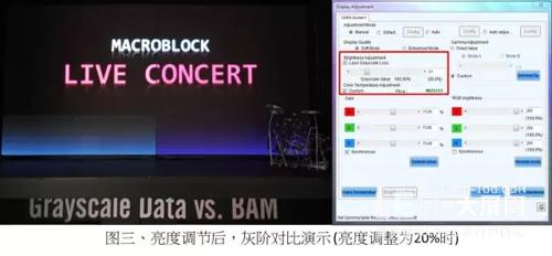聚積科技的亮度調(diào)節(jié)模板(Brightness Adjusment Module, BAM)功能體驗,則是透由聚積具有”電流增益功能”(Current Gain)的LED驅(qū)動IC,并升級控制器軟件的版本,用戶即可更簡便地調(diào)節(jié)led顯示屏亮度,且led顯示屏不會犧牲任何灰階表現(xiàn)。參觀者可直接在控制器軟件界面上拖曳亮度調(diào)節(jié),即可看到亮度調(diào)暗的同時,使用傳統(tǒng)方式 -- 灰階數(shù)據(jù)調(diào)整亮度 (Grayscale Data) 以及使用創(chuàng)新方式 -- ”亮度調(diào)節(jié)模板” (BAM)進行亮度調(diào)節(jié)時的灰階變化。若需了解更詳細(xì)的亮度調(diào)節(jié)模板及控制器軟件版本,歡迎透過Email : marketing@mblock.com.tw與我們聯(lián)系。