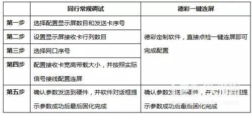 深圳德彩光電就客戶對(duì)顯示屏軟件調(diào)試的痛點(diǎn)潛心研究,開發(fā)出X-Plus系列產(chǎn)品,配備一鍵連屏功能,真正解決了長(zhǎng)期困擾客戶對(duì)顯示屏的軟件調(diào)試的問(wèn)題。到底什么樣的一個(gè)神兵利器呢?我們先來(lái)做個(gè)比較: