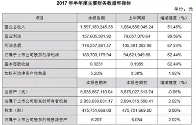 昨(24)日晚間,國星光電發(fā)布業(yè)績快報(bào),公司2017年1-6月實(shí)現(xiàn)營業(yè)收入15.97億元,同比增長51.45%;歸屬于上市公司股東的凈利潤1.54億元,同比增長62.44%。
