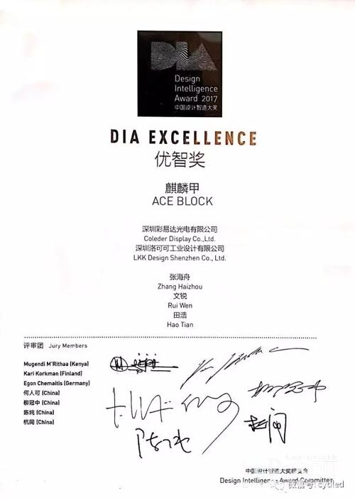 由于杭州市錢塘公證處的公證人員對(duì)此次總決賽的評(píng)選進(jìn)行了現(xiàn)場(chǎng)全程監(jiān)督公證,所以本次DIA總決賽的最終結(jié)果也是十分的具有公平公正性。彩易達(dá)麒麟甲(ACE BLOCK)也正是在公證處工作人員的公證之下獲得的中國(guó)智造大獎(jiǎng)。