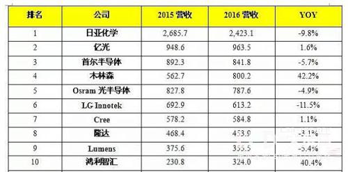 而根據調研機構DIGITIMESResearch公布的2016年全球主要LED封裝廠營收排名數(shù)據顯示,木林森現(xiàn)已成為全球第四大封裝廠商。