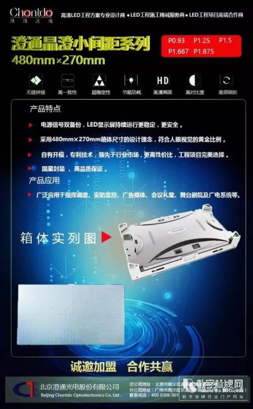 公司設(shè)計(jì)團(tuán)隊(duì)針對性的采用了澄通晶澄480X270壓鑄箱體系列的小間距P1.25全彩屏(優(yōu)點(diǎn)如下↓↓↓)