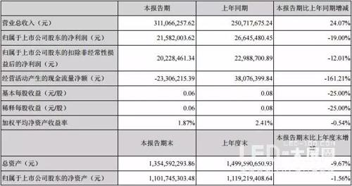 8月23日,雷曼股份發(fā)布2017年半年報,公司2017年1-6月實現(xiàn)營業(yè)收入3.11億元,同比增長24.07%;光學光電子行業(yè)平均營業(yè)收入增長率為36.24%;歸屬于上市公司股東的凈利潤2158.20萬元,光學光電子行業(yè)平均凈利潤增長率為32.63%。