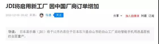 JDI在內(nèi)憂外患的情況下,竟然還在2016年底發(fā)布新聞?wù)f要在12月底啟用位于石川縣的白石工廠,理由因為來自華為和OPPO的液晶面板廠家訂單增多。