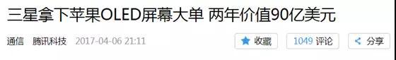 到了2017年4月,Digitimes的消息,蘋果已經(jīng)向三星OLED屏幕下了兩年的訂單,價值高達(dá)90億美元,蘋果徹底在下一代手機iphone 8時代拋棄了JDI,三星成為蘋果手機OLED屏幕的唯一供應(yīng)商。