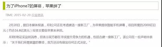 事實上,蘋果對自己選擇的供應(yīng)商,都會下巨資進行投資,例如JDI為2016年上市的iphone 7新建的液晶面板工廠,就獲得了蘋果2000億日元的投資。