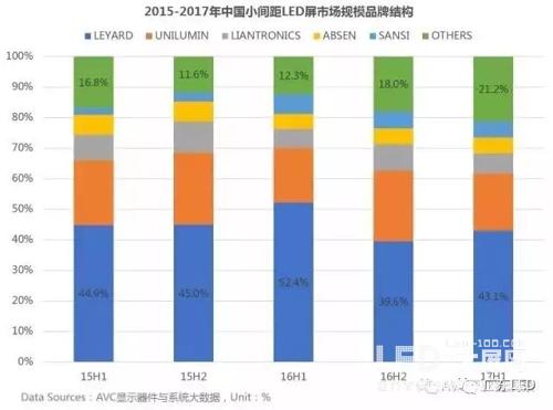 從市場品牌分布數(shù)據(jù)分析,龍頭企業(yè)利亞德今年上半年貢獻(xiàn)43.1%份額,洲明科技約為18.6%,而其他廠商占比逐漸上升,達(dá)21.2%,主要表現(xiàn)為越來越多的廠商加入到小間距LED市場競爭。業(yè)內(nèi)人士預(yù)計(jì)未來兩三年,在LED顯示行業(yè)中,將出現(xiàn)1-2家收入達(dá)到甚至超過50億元的企業(yè)。