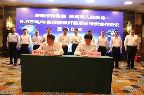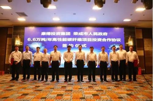 康得集團(tuán)與榮成市政府“年產(chǎn)6.6萬(wàn)噸高性能碳纖維項(xiàng)目”簽約儀式現(xiàn)場(chǎng)