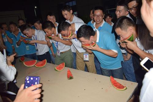 最熱鬧的還屬吃西瓜比賽,男女分隊進(jìn)行,每6人一組,在三分鐘之內(nèi),最快吃完且符合標(biāo)準(zhǔn)者獲勝。比賽期間,“圍觀群眾”比“吃瓜群眾”還要激動,在場邊加油助威,不亦樂乎。最后獲勝者不僅能夠獲得獎品,更能獲得“西瓜大王”和“西瓜女王”的稱號。