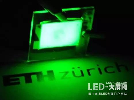 蘇黎世聯(lián)邦理工學(xué)院化學(xué)工程實(shí)驗(yàn)室科研人員最近發(fā)明了一種超薄的可彎曲的發(fā)光二極管(LED),它能發(fā)出超純的綠光,研究人員使用這種精細(xì)色調(diào)顯示了三個(gè)字母“ETH”。研究團(tuán)隊(duì)負(fù)責(zé)人Chih-Jen Shih教授對(duì)他的研究突破感到非常滿(mǎn)意:“到目前為止,沒(méi)有人能成功地生產(chǎn)出像我們這樣純凈的綠光。”