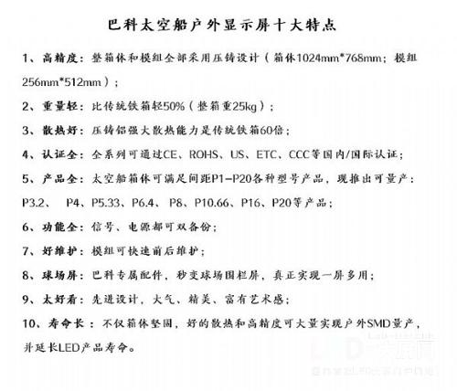 2017年8月,知名led顯示屏制造企業(yè)巴科光電(www.bakoLED.cn)歷時近一年研發(fā)打造的戶外小間距led顯示屏——太空船P2正式量產(chǎn)上市,標志著戶外小間距廣告顯示屏的真正到來!