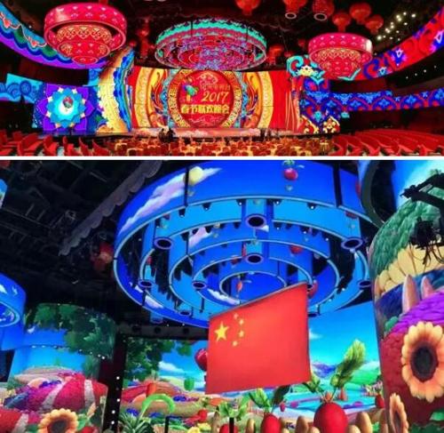 2017央視春晚導(dǎo)演組使用近2000平方米高清顯示屏,呈現(xiàn)一幅幅絢麗多彩的畫(huà)卷,每一處數(shù)字舞美都精雕細(xì)琢,每一次歡笑都喜氣洋洋,每一秒節(jié)目都美輪美奐。