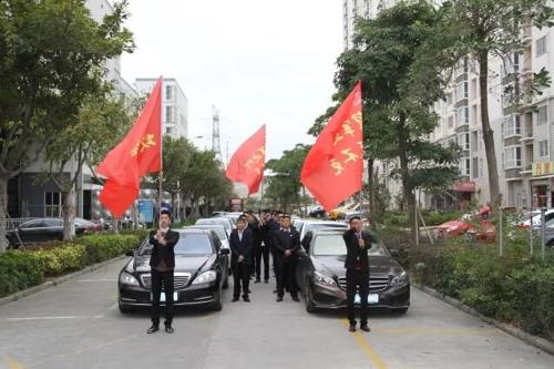 9:30,翔安火炬園入口豪車列隊(duì),伴隨著飄揚(yáng)旗幟緩緩駛?cè)霃?qiáng)力巨彩大門。