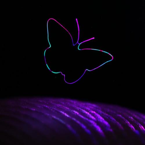 目前創(chuàng)建的圖像非常小,只能用毫米作為計量單位。而且在以一種創(chuàng)建移動圖像幻覺所需的速度下,系統(tǒng)只能繪制出一條簡單的線條。該團隊成功描繪出一種移動螺旋式線條,以及靜態(tài)的蝴蝶輪廓