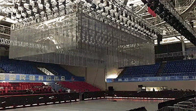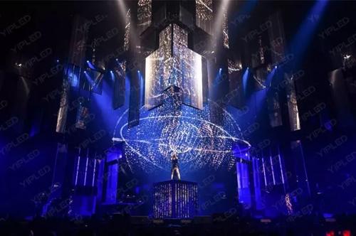 懸掛在舞臺上空的80組透明·冰屏,可以上下左右進行移動,配合酷炫的動畫3D特效,在演唱會當晚呈現(xiàn)出無比夢幻和極具震撼的視覺效果。